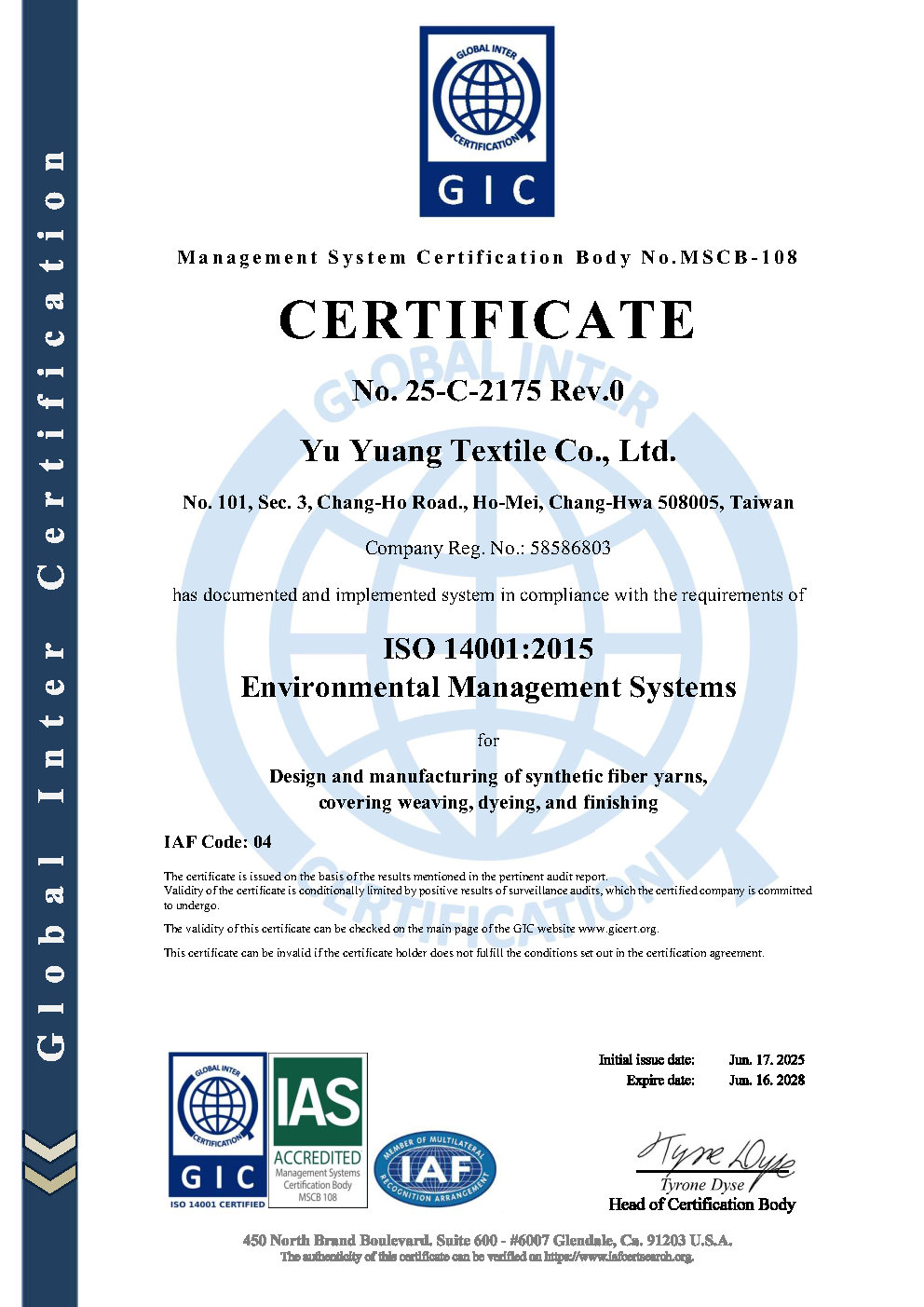 Yu Yuang is a professional textile company engaging in the vertical process of weaving, dyeing and finishing for more than half a century. “Environmental Protection” and “Economic Development” are equally important for the company in the quest for living in good quality. For the prosperity of the whole world and the well-being of all humanity, the company is determined to introduce an environmental management system that advocates for environmental protection across its full-range of activities with focus on minimizing or even eliminating the impact on the environment. This will allow the environment to return to its natural state as well as maximize the utilization of resources and perform corporate social responsibilities.
