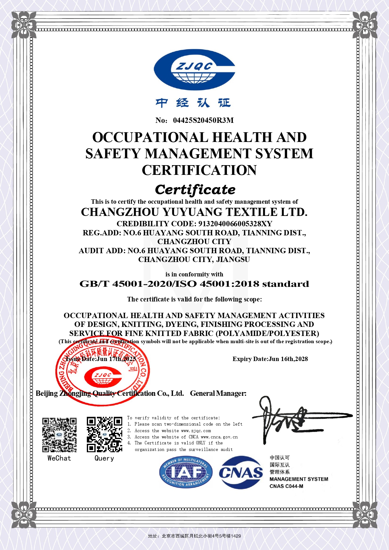 (Yu Yuang Chang-Zhou Facility)