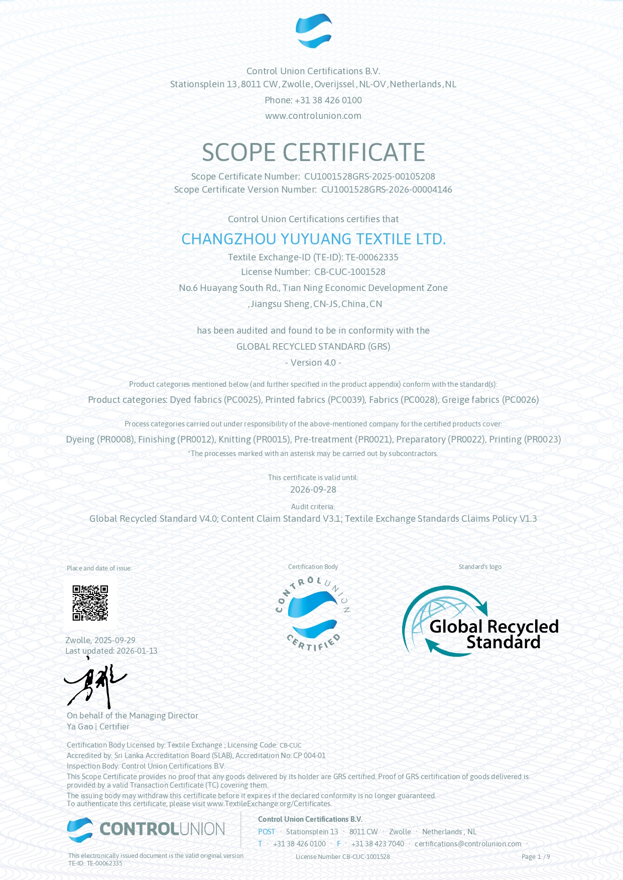 GRS Certificate